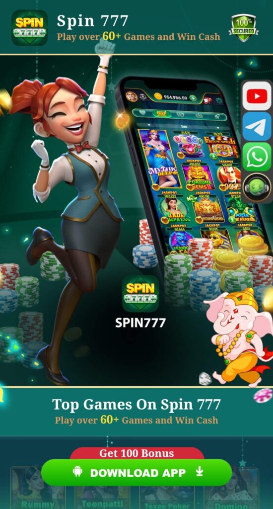 Friends! Spin 777 offers a minimum withdrawal of ₹100, which you can easily transfer via bank or UPI. This game features over 50 exciting games, which you can play with the free bonus.
