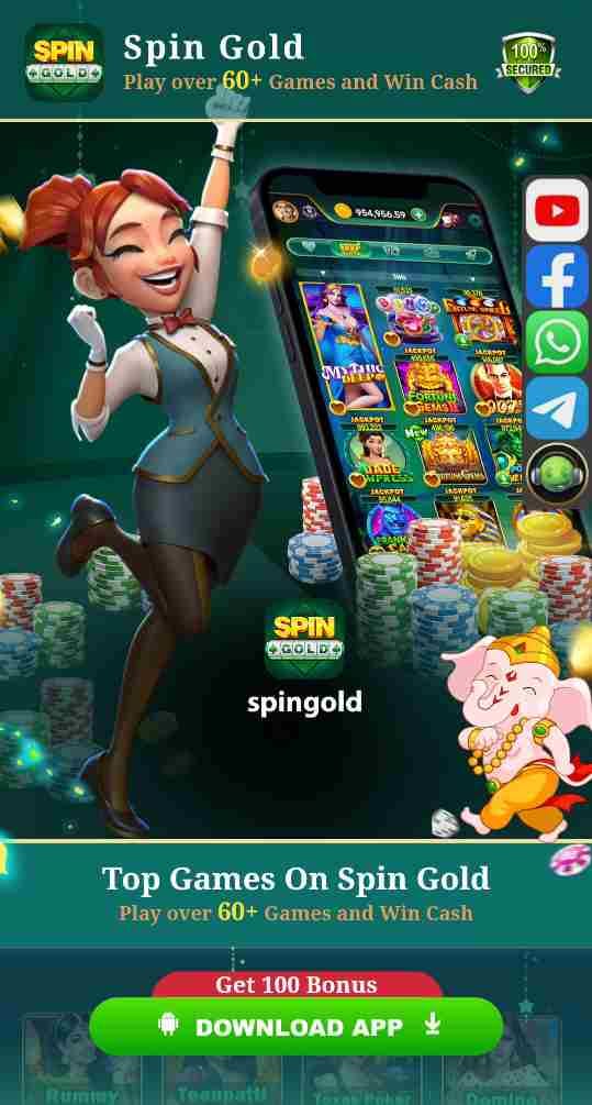 The minimum withdrawal requirement for Spin Gold is 100, which you can make through bank or UPI. This game features over 55+ games, which you can play with your bonus. You can also earn money by referring others.